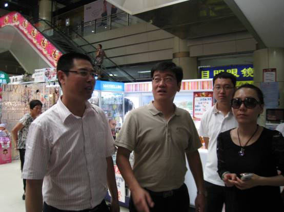 逸彩城总经理沈军陪同沙区团委书记李光巡视逸彩城商场