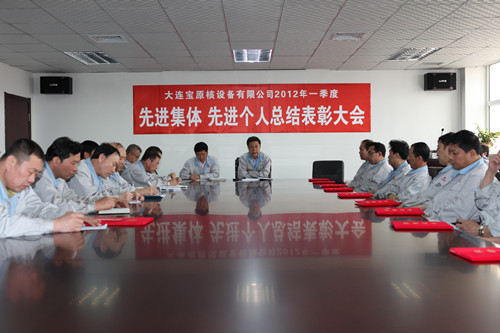 2012年是大连宝原核设备有限公司实现总体搬家、全面提升企业能力、跳跃生长的第一年和要害性的一年。为引发全体员工的生产积极性和创立性,使员工以崭新的精神风貌、高度的主人翁责任感、使命感和饱满的事情热情投身于企业的大生长中,把开展以“争创先进团队,争当示范尖兵”的“八讲八比”劳动竞赛运动引向深入,以先进典范人物的事迹鼓舞、熏染、发动、激励全体员工在生产经营事情中高昂向上、团结拼搏,确保公司全年生产经营目标任务的完成,宝原公司于5月11日召开了2012年一季度先进集体、先进个人总结表扬大会。核电分厂荣获“先进集体”称呼;赵治祥等九名同志荣获“单项尖兵”称呼;李成君等5名同志荣获“先进班组长”称呼;赵宏帅等14名同志荣获“2011—2012年度优秀青工”称呼。